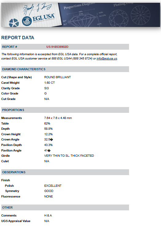 Diamonds Weight: 1.60 ct