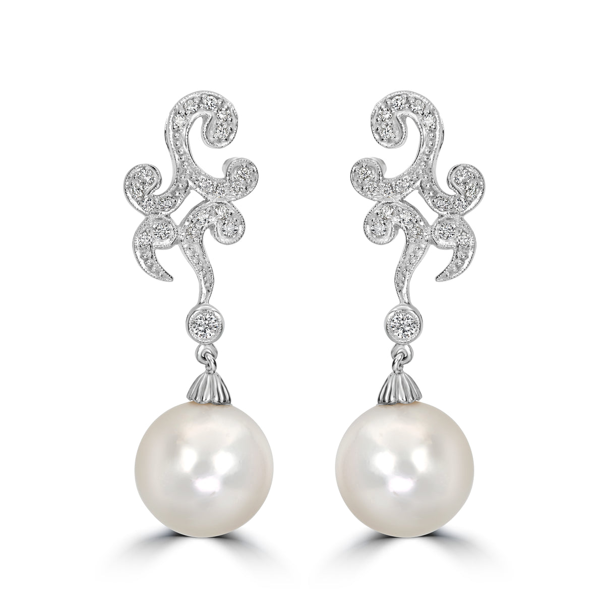7.50 ct Pear & Diamond Earrings in 18K White Gold