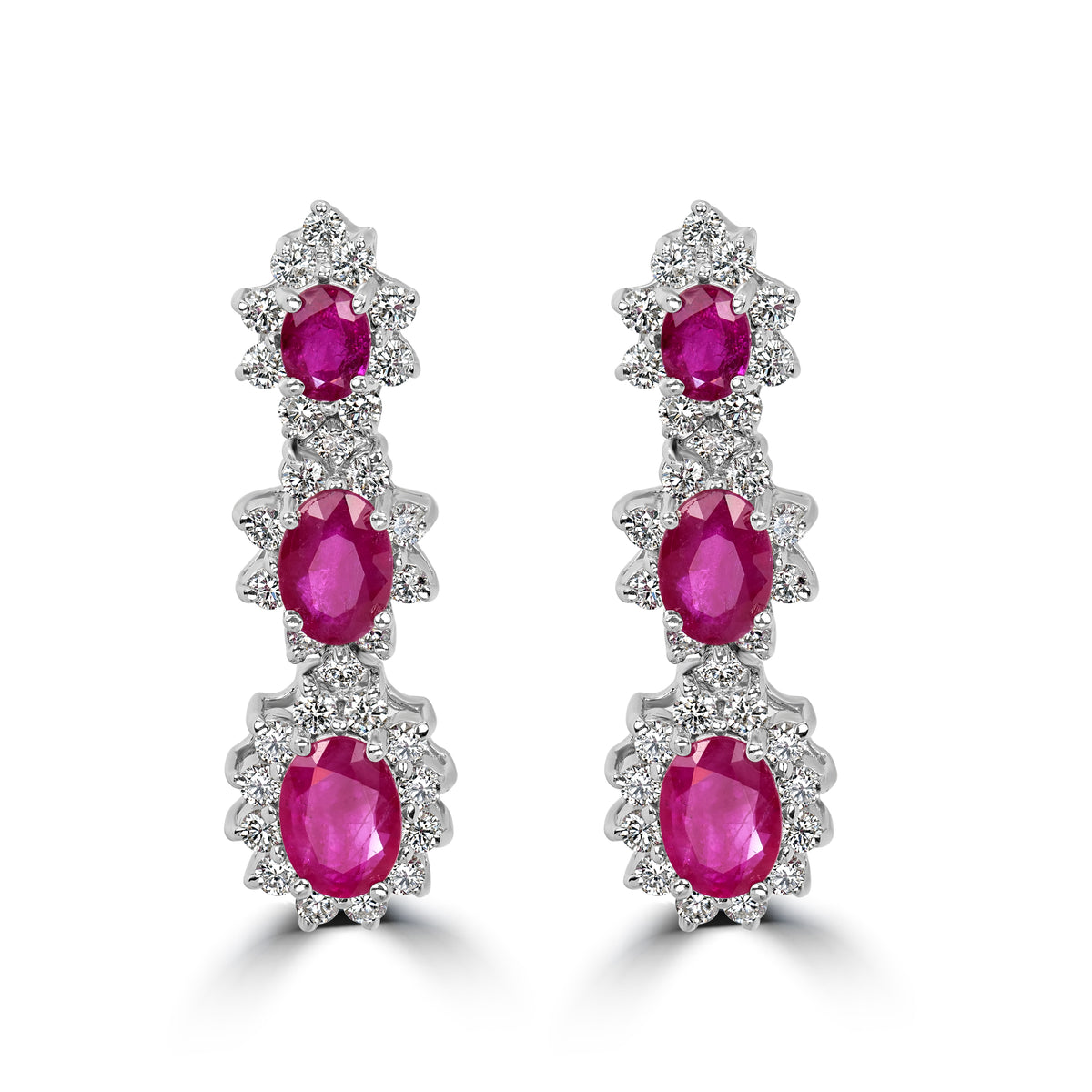 3.68 ct Ruby & Diamond Earring in 18K White Gold - 18K White Gold