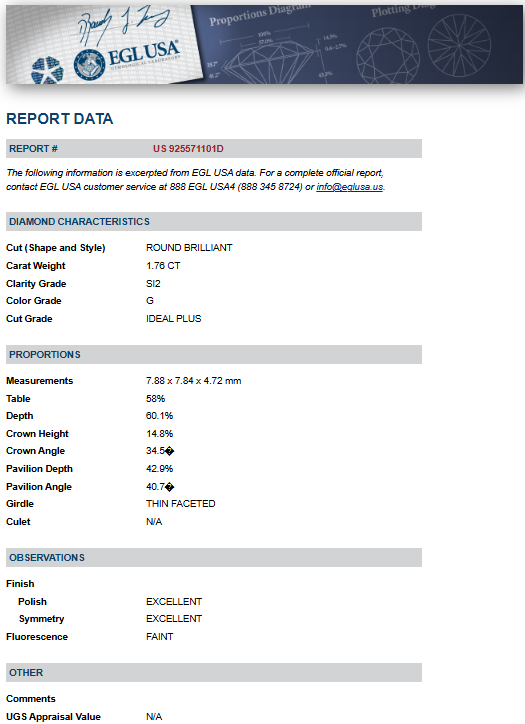 Diamonds Weight: 1.76 ct