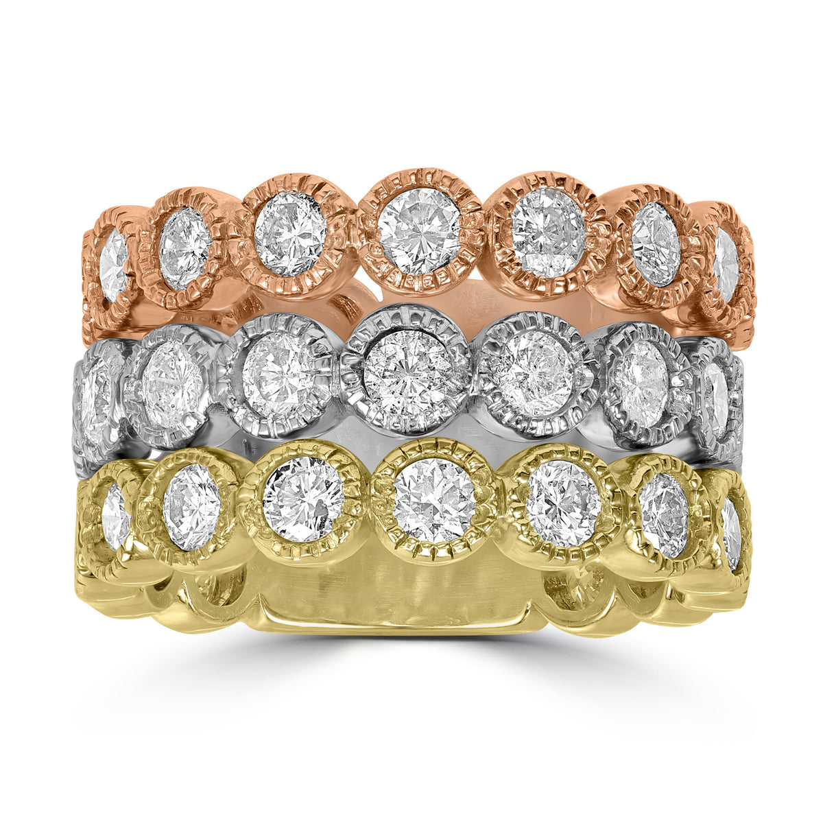 Inform when this item available 3.19 ct Tri Color Diamond Band in 14K Rose, Yellow and White Gold