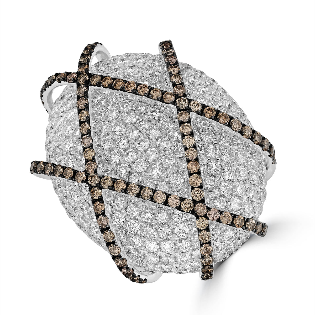 5.90 ct White & Brown Diamond Cocktail Ring in 14K White Gold - 14K White Gold
