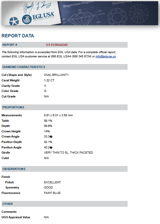 Diamond Weight: 1.22ct