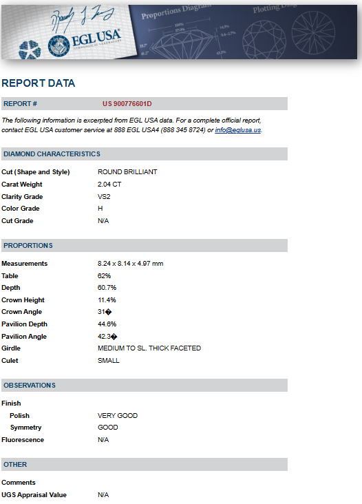 Diamond Weight: 2.04ct